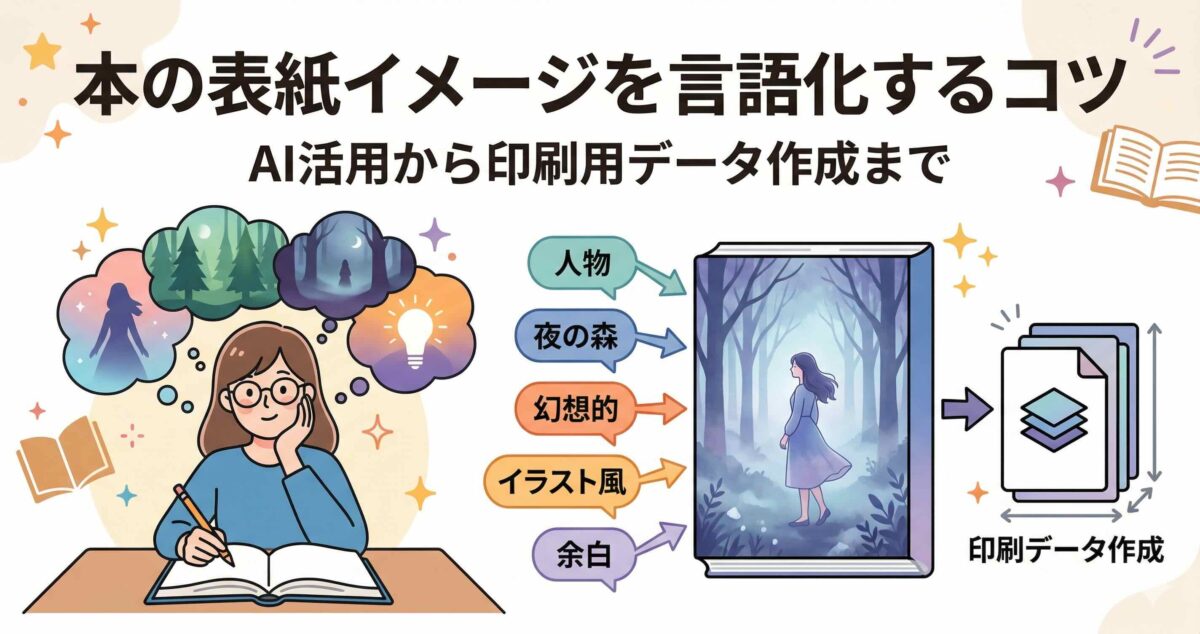 AIは、頭の中のイメージを見える形にするのが得意です。一方で、印刷に必要な正確な寸法設計やレイアウト調整は、専用の表紙作成サービスを使ったほうが確実です。